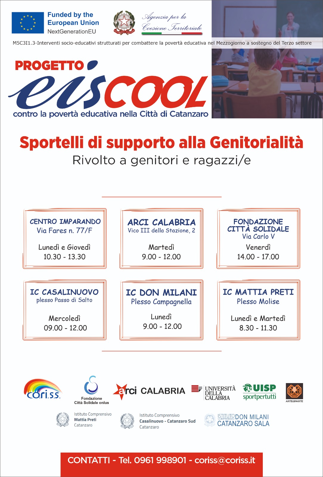 Circolare n.235 – Progetto EISCOOL – Presentazione sportello di ascolto per sostegno alla genitorialità – AA.SS. 2023/2024 – 2024/2025